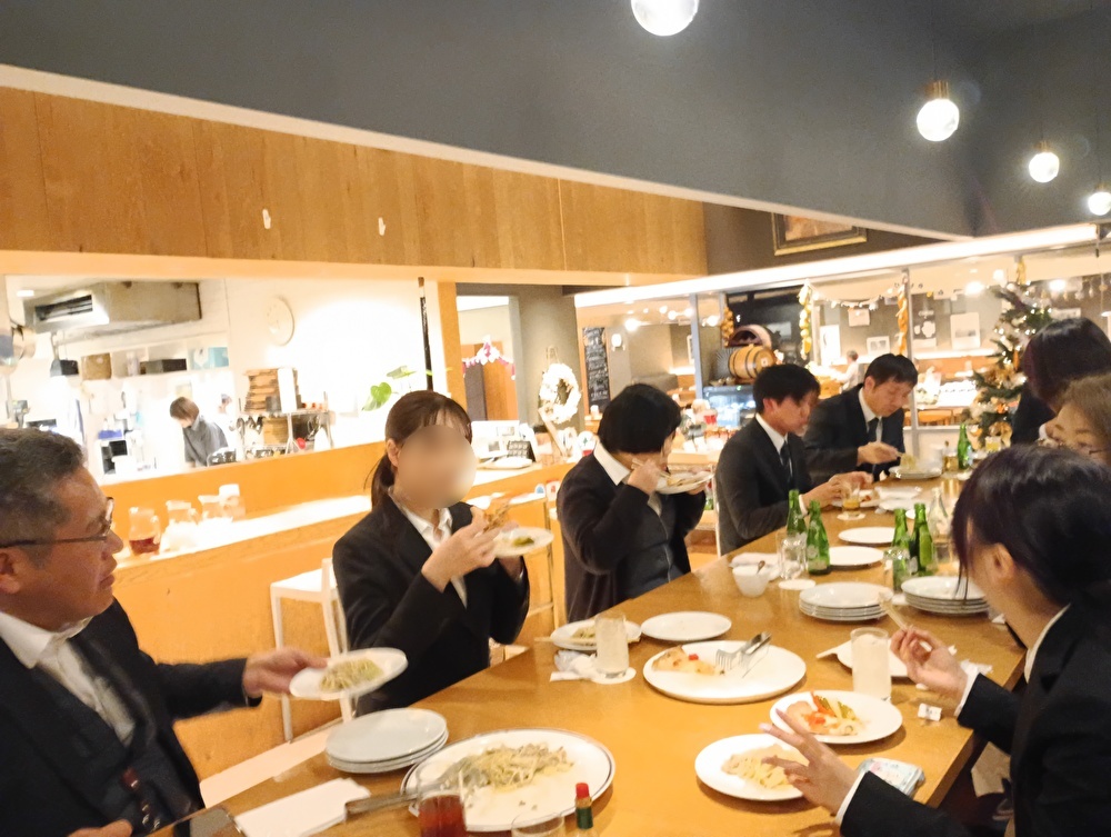 学生の皆さんも少し緊張気味でしたが、懇親会では和やかなムードで、社員ともお話しし交流する楽しい会となりました🍽